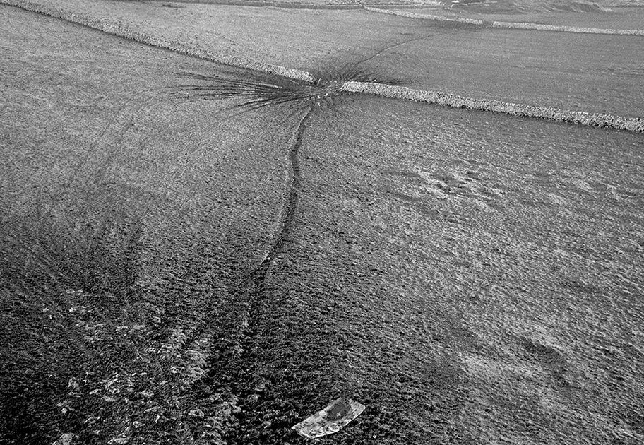 Paul Hill’s White Peak Dark Peak (1990) is a stunner. He’s fascinated with lines in the landscape, especially faint ones like badger tracks, and something that only works well in black and white, as I’ve found for myself. He has an eye for the surreal and macabre – the wallaby in vignetter, a rotting badger through the year – and typologies – mushroom circles, tussocks, dead trees.