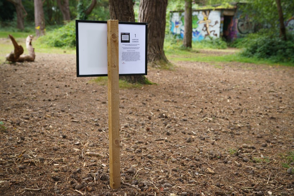 Having walked the trails numerous times, it became obvious that once the exhibition had entered the landscape, it took on a life of its own. First, it was clear that the images were also being encountered individually where they intersect with the habitual circuits of dog-walkers, horse-riders and young families. Doubtless, some would think it just some arty nonsense not worth bothering with, but I hope that most would be pleased to find something a bit unexpected and hopefully like the image, possibly giving them pause to think throughout the rest of their walk or ride.
