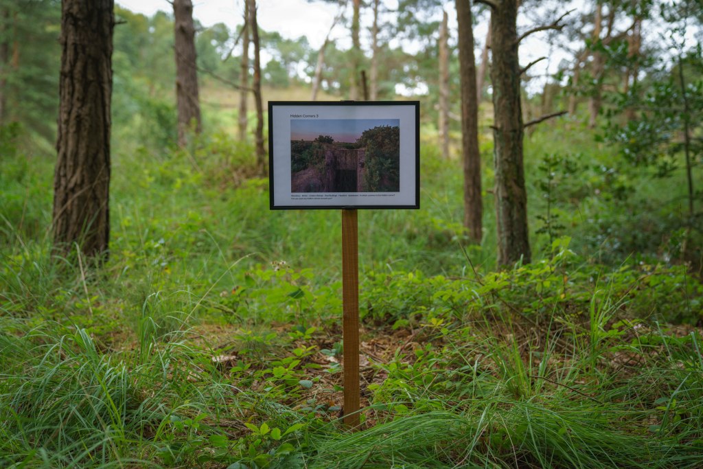 Hence, I came up with a photography trail of around 90 minutes around a lesser-known part of East Budleigh Common, taking in a few hidden corners where six laminated and framed images were planted on wooden stakes. The trail itself and the selection of sites for images are thus an expression of the same thing as the images; they have been selected and arranged in a manner not dissimilar to going on a shoot and editing images afterwards. To this extent, I guess the trail is more an installation than an exhibition. Each image invites viewers to look around for hidden corners close by, and also to guess on which of the six named commons it was taken.